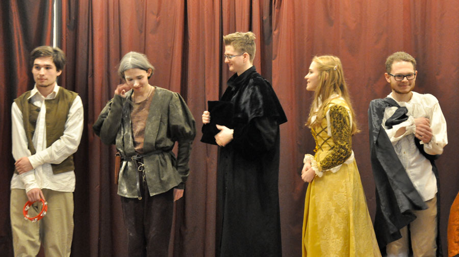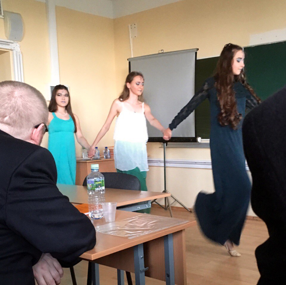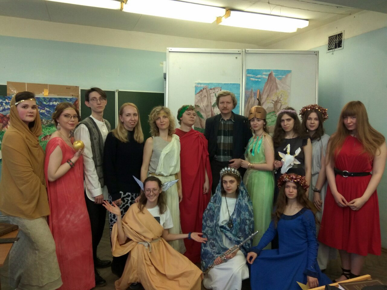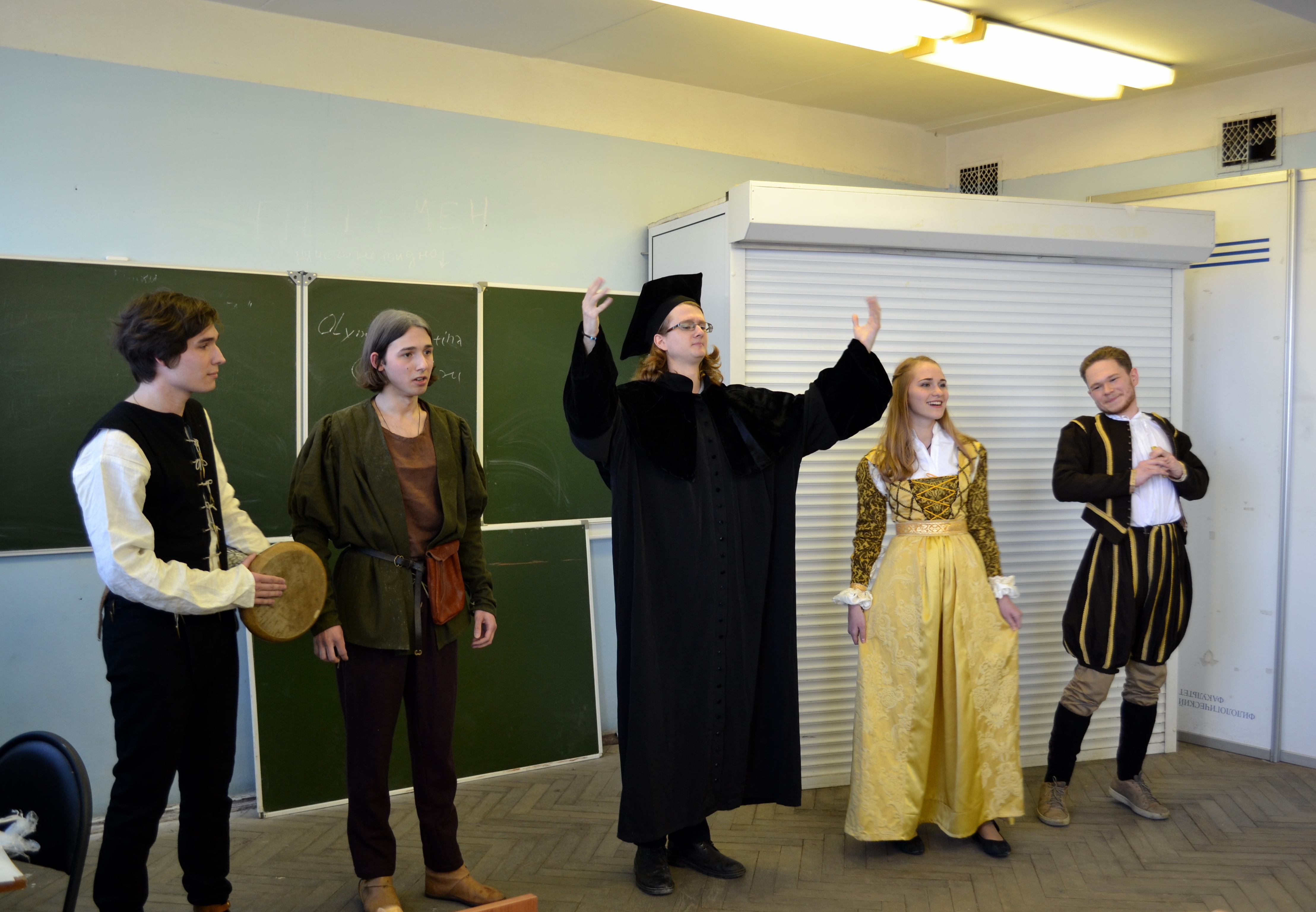 У театральных постановок на классическом отделении есть своя история. Еще в 70‑е годы замечательный латинист Николай Алексеевич Федоров организовал «Студенческий Латинский театр». Ставили маленькие сценки: «Привидение» и «Вакхид» Плавта (1968/69 и 1969/70 уч. гг.), «Эпиталамии» Катулла. В 1972 году Николай Алексеевич поставил со студентами «Дульциция» Гросвиты Гандерсгеймской (X в.) — эту постановку показали на международном конгрессе «Эйрене» в мае 1976 года в Ереване, после чего «Студенческий Латинский театр» получил приглашение в Германию. Представления состоялись в Йене, Галле, Лейпциге и Берлине.